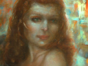 16" x 20" oil on canvas "Plain Girl in Emerald Cocktail Dress" $795 |
